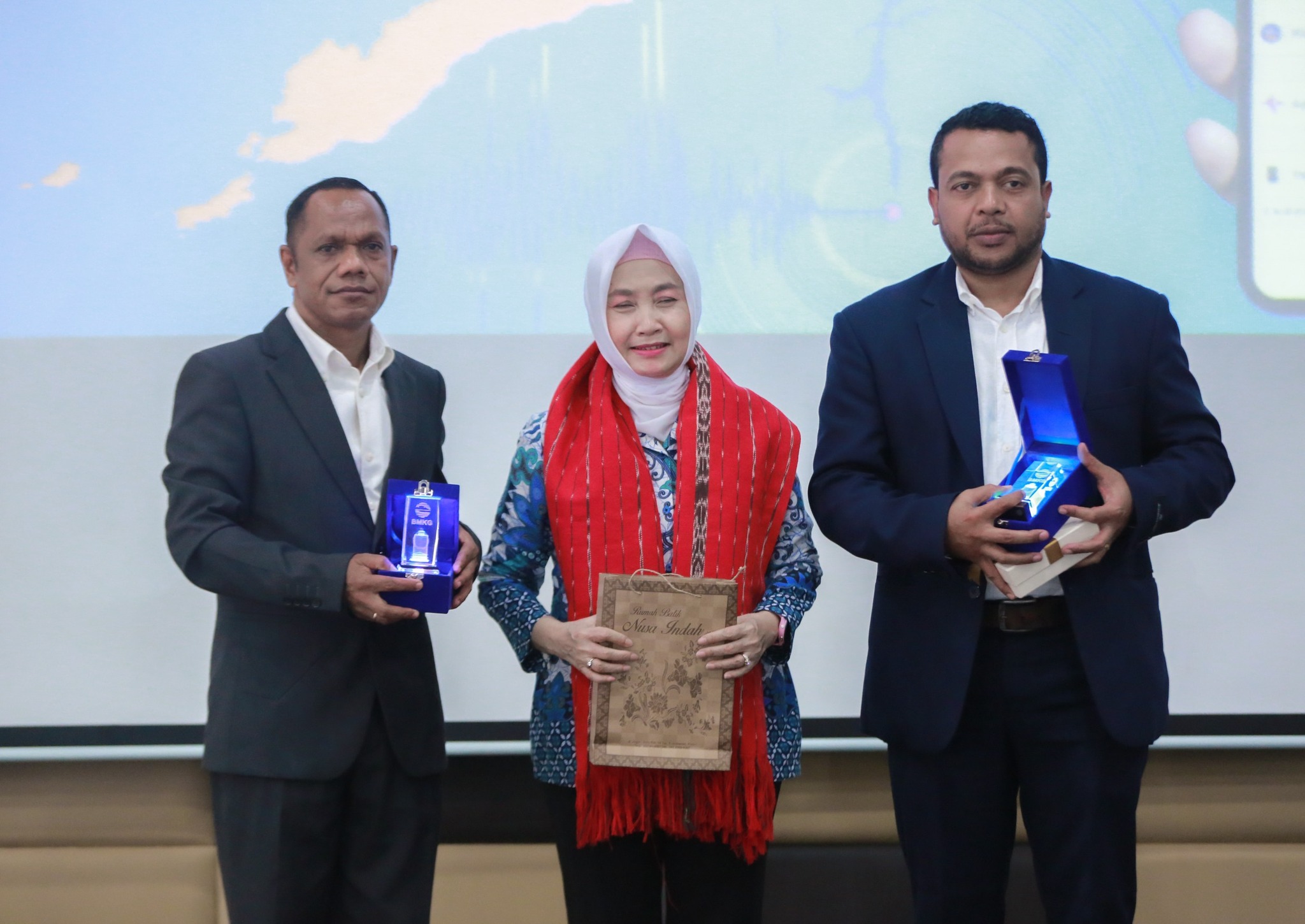 Dili, 7 de Outubru de 2025 — Instituto de Geociências de Timor-Leste (IGTL) ofisiálmente simu Chefe 𝑩𝒂𝒅𝒂𝒏 𝑴𝒆𝒕𝒆𝒐𝒓𝒐𝒍𝒐𝒈𝒊, 𝑲𝒍𝒊𝒎𝒂𝒕𝒐𝒍𝒐𝒈𝒊, 𝒅𝒂𝒏 𝑮𝒆𝒐𝒇𝒊𝒔𝒊𝒌𝒂 (𝑩𝑴𝑲𝑮) husi Indonézia, 𝐏𝐫𝐨𝐟.ª 𝐈𝐫. 𝐃𝐰𝐢𝐤𝐨𝐫𝐢𝐭𝐚 𝐊𝐚𝐫𝐧𝐚𝐰𝐚𝐭𝐢, 𝐌.𝐒𝐜., 𝐏𝐡.𝐃., hamutuk ho nia ekipa iha Dili.