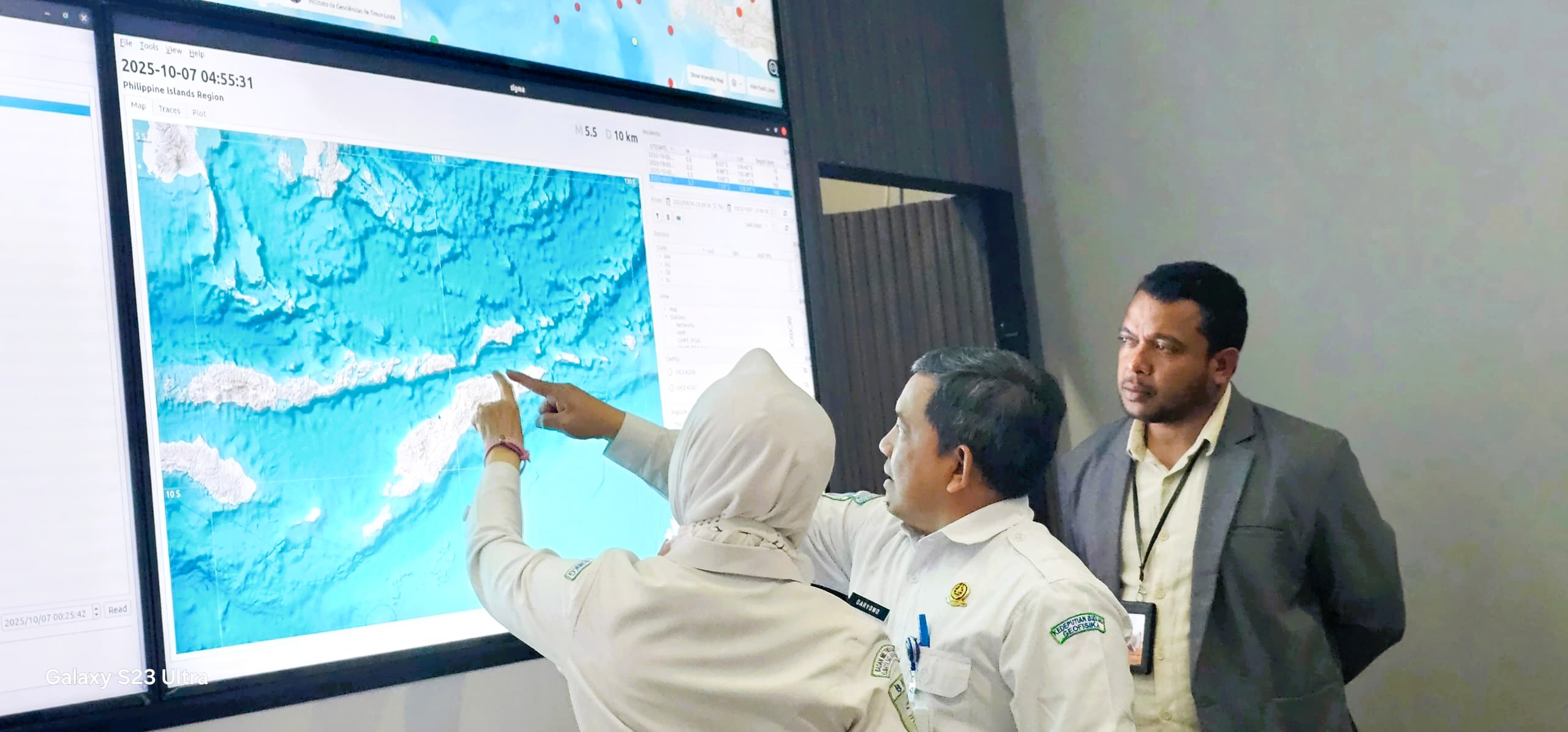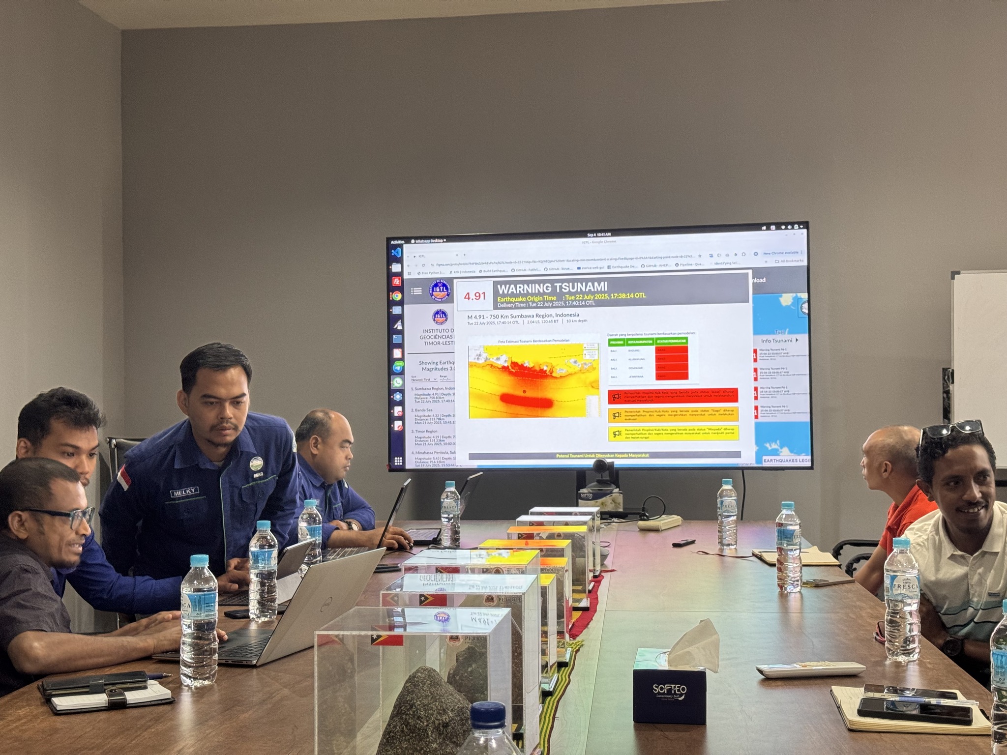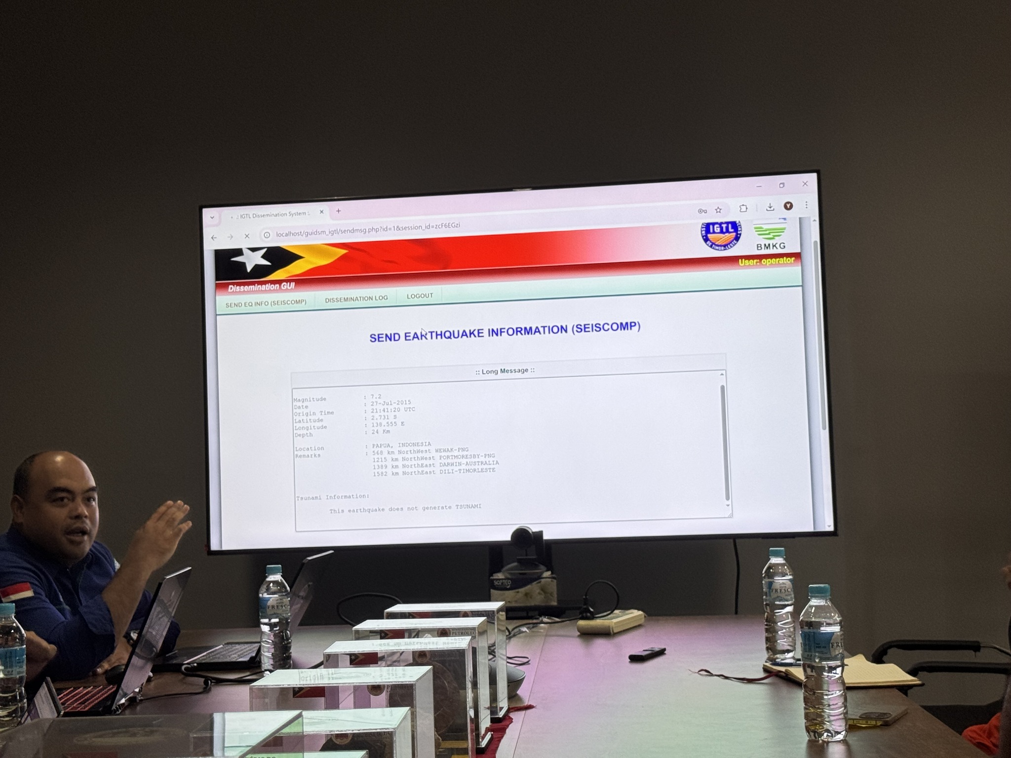 Instituto de Geociências de Timor-Leste (IGTL) ofisiálmente simu ekipa tékniku husi Badan Meteorologi, Klimatologi, dan Geofisika (BMKG) ne’ebé lidera husi 𝐃𝐫. 𝐃𝐚𝐫𝐲𝐨𝐧𝐨, 𝐒.𝐒𝐢., 𝐌.𝐒𝐢., Diretor ba Terremotu no Tsunami.