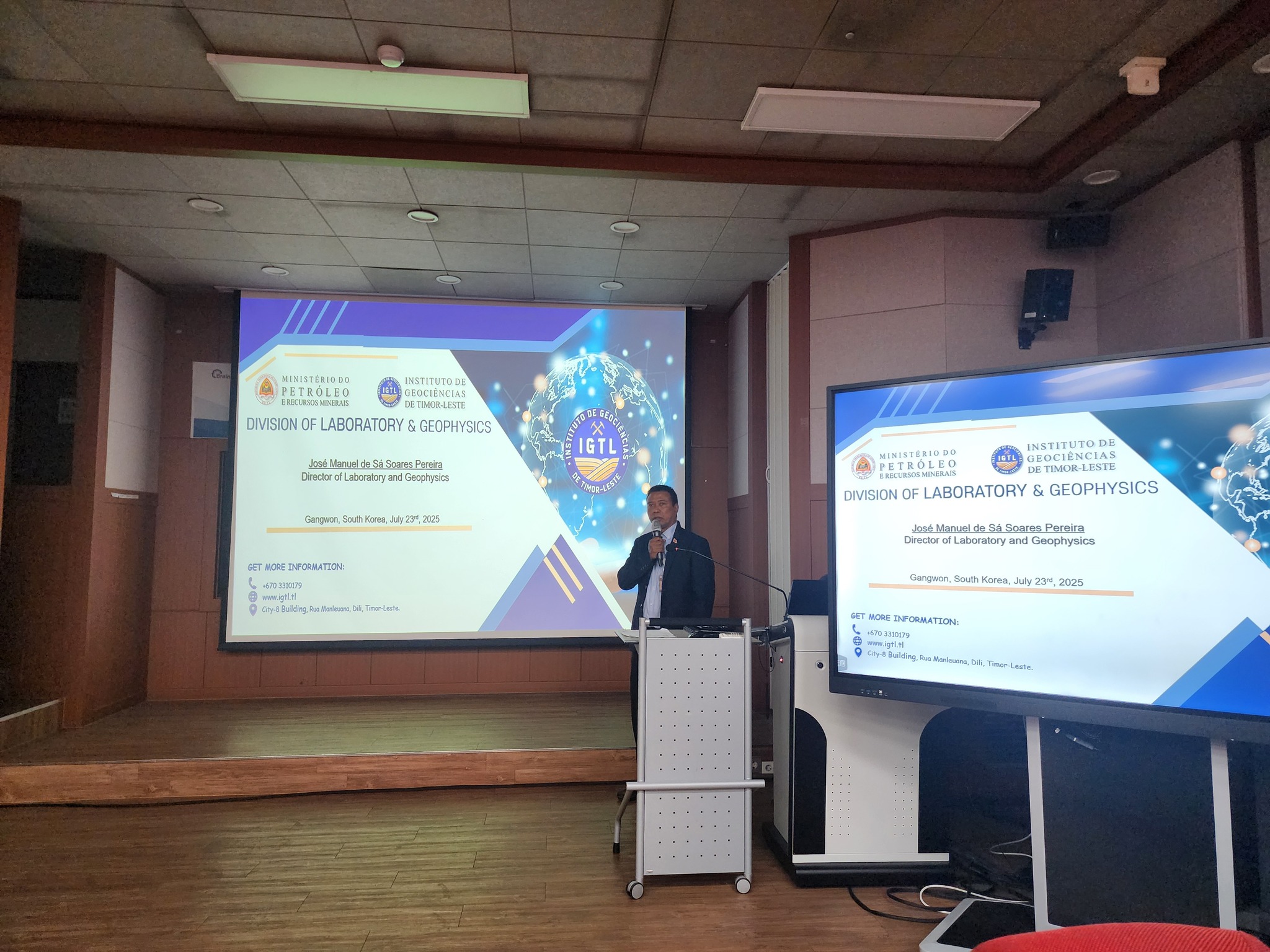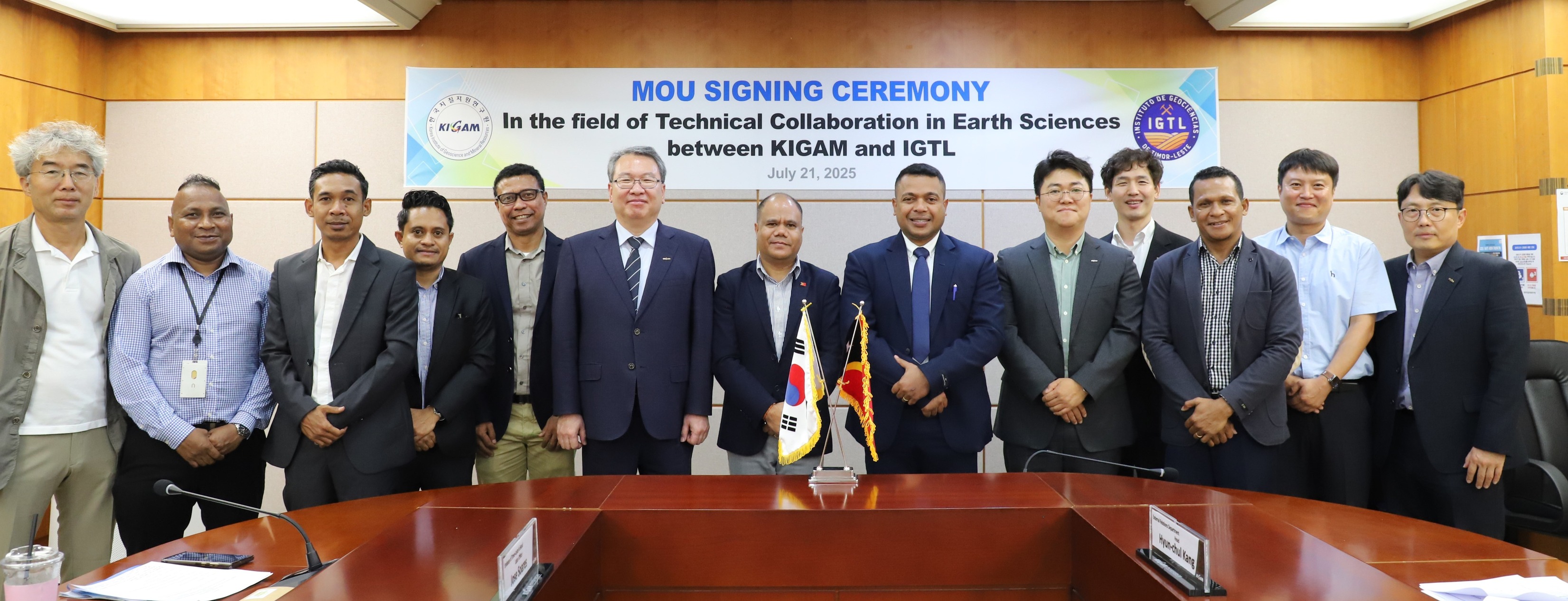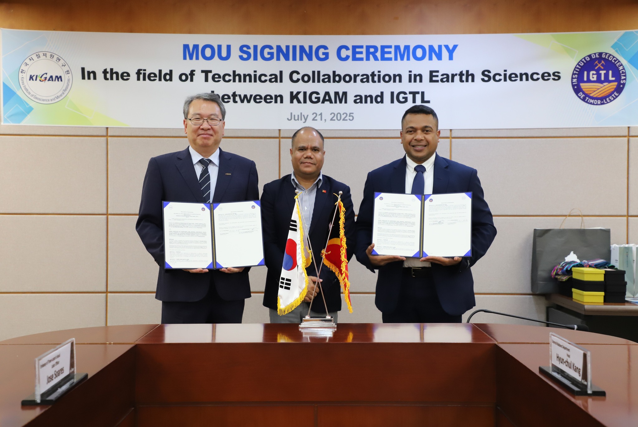 Iha dia 21 de Julho, IGTL no 𝐊𝐨𝐫𝐞𝐚 𝐈𝐧𝐬𝐭𝐢𝐭𝐮𝐭𝐞 𝐨𝐟 𝐆𝐞𝐨𝐬𝐜𝐢𝐞𝐧𝐜𝐞 𝐚𝐧𝐝 𝐌𝐢𝐧𝐞𝐫𝐚𝐥 𝐑𝐞𝐬𝐨𝐮𝐫𝐜𝐞𝐬 (𝐊𝐈𝐆𝐀𝐌) formaliza akordu atu kontinua kooperasaun ofisiál depois de pausa durante 11 anos. Parceria foun ida ne’e sei konsentra ba estudos geológiku, avaliasaun rekursu, armazenamentu karbonu, responde ba dezastre no mudansa klimátika, no hadia kapasidade institusionál. KIGAM sei suporta IGTL liuhusi workshop regular, formasaun tekniku baseia ba nesesidade, troka ezpertu, no halo peskiza hamutuk. Seremonia asinatura iha Daejeon marka prezensa husi 𝐏𝐫𝐞𝐳𝐢𝐝𝐞𝐧𝐭𝐞 𝐊𝐈𝐆𝐀𝐌 𝐃𝐫. 𝐊𝐰𝐨𝐧 𝐘𝐢 𝐊𝐲𝐮𝐧, 𝐄𝐦𝐛𝐚𝐢𝐱𝐚𝐝ó𝐫 𝐓𝐢𝐦𝐨𝐫-𝐋𝐞𝐬𝐭𝐞 𝐛𝐚 𝐊𝐨𝐫𝐞𝐚 𝐀𝐧𝐭ó𝐧𝐢𝐨 𝐝𝐞 𝐒á 𝐁𝐞𝐧𝐞𝐯𝐢𝐝𝐞𝐬, 𝐧𝐨 𝐏𝐫𝐞𝐳𝐢𝐝𝐞𝐧𝐭𝐞 𝐈𝐆𝐓𝐋 𝐉𝐨𝐛 𝐁𝐫𝐢𝐭𝐞𝐬 𝐝𝐨𝐬 𝐒𝐚𝐧𝐭𝐨𝐬.