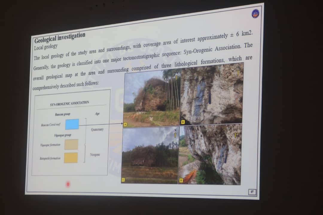 Durante forum ne’e, Prezidente IGTL hato’o aprezentasaun ho títulu “𝐏𝐞𝐭𝐫𝐨𝐥𝐞𝐮𝐦 𝐚𝐧𝐝 𝐌𝐢𝐧𝐞𝐫𝐚𝐥 𝐏𝐫𝐨𝐬𝐩𝐞𝐜𝐭𝐬 𝐢𝐧 𝐓𝐢𝐦𝐨𝐫-𝐋𝐞𝐬𝐭𝐞: 𝐅𝐢𝐧𝐝𝐢𝐧𝐠𝐬 𝐟𝐫𝐨𝐦 𝐈𝐆𝐓𝐋.” Nia aprezentasaun deskreve instituto nia papel no rezultadu servisu husi IGTL iha área kartografia jeolójika, prospesaun rekursu minerais no petróleu, estudu hidrojeolójiku no jeotérmiku, engenharia jeolójika no mós avaliasaun risku jeolójiku iha Timor-Leste.