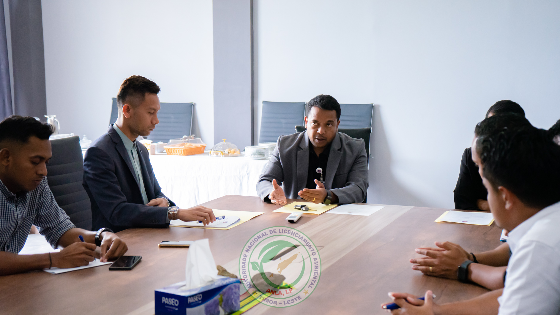 Dili, 13-02-2025, Prezidente Autoridade Nasionál Lisensiamentu Ambientál, Institutu Públiku (ANLA.I.P.) Ir.Maximiano de Oliveira, S.T.,M.Eng. Akompaña husi Diretór Unidade Fiskalizasaun Ambientál (UFA), Sr. Norberto de Araújo, no apoiu ofisiál logistik nomós apoiu Gabinete, hala’o enkontru ho parte Instituto Geociências Timor-Leste, (IGTL, I.P.), liu husi ninian Presidente Eng. Job Brites dos Santos, akompaña mós Vise-Presidente hamutuk ho ninian estrutura sira, hala’o seremonia formaliza aseitasaun transferensia viatura Estadu nian ho marka "Toyota Hillux Revo" ba ANLA,I.P. atu nune’e veitura refere hodi utiliza ba ANLA,I.P., hodi hala’o atividade survei inísiu, inspesaun no monitorizasaun iha tereñu. Atividade ne'e hala’o iha lokraik ne’e, iha City 8, peso 2, Rua: Has-laran, Manleuana, Dili.